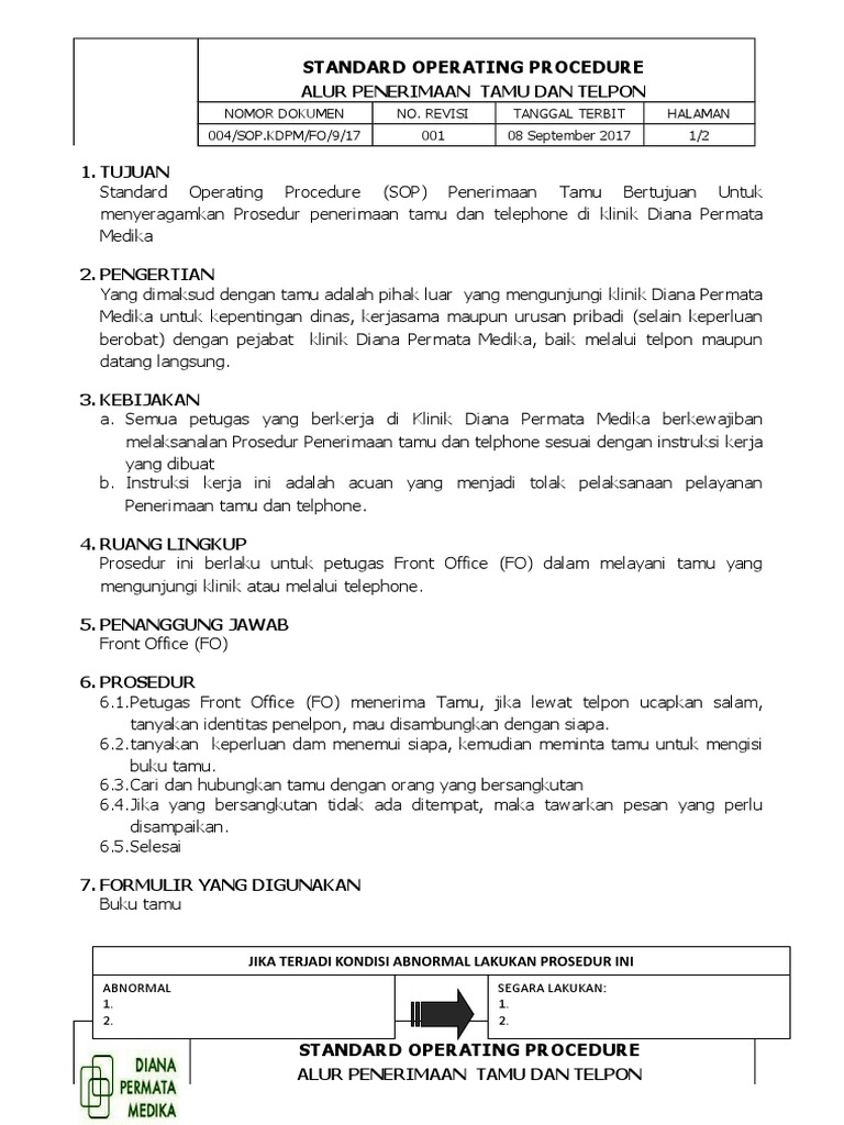 Related : Kepentingan Standard Operating Procedure (Sop) - Pengendalian terhadap tamu atau pihak eksternal..