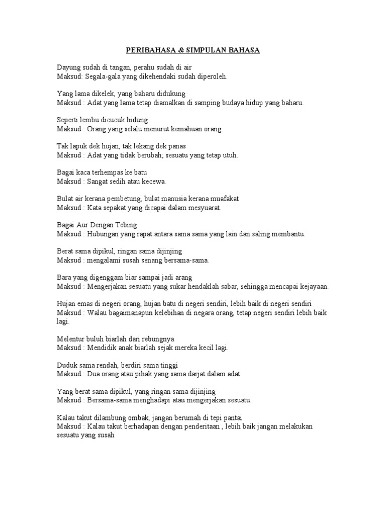 Bukit sama di daki, lurah sama dituruni. Soalan peribahasa sama maksud ini pernah ditanya dalam peperiksaan sijil pelajaran malaysia (spm). Kalau takut berhadapan dengan penderitaan , lebih baik jangan melakukan sesuatu yang susah indah. Segala kesusahan dan kesenangan ditanggung bersama. antah berkumpul sama antah beras sama beras arti peribahasa : Majikannya sangat saying kepadanya kerana dia capt kaaki, ringan tangan. Savesave karangan berat sama dipikul, ringan sama. Tiada ulasan pada maksud ringan sama menjinjing, berat sama memikul. Susunan peribahasa yang membawa maksud yang sama atau membicarakan perkara atau sesuatu keadaan yang hampir sama. Senang dan susah dialami bersama. Hati gajah sama dilapah, hati kuman sama dicecah. Hati gajah sama dilapah, hati kuman sama dicecah 5. Ke bukit sama didaki, ke lurah sama dituruni 4. Download as docx, pdf, txt or read online from scribd.